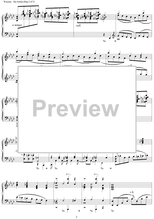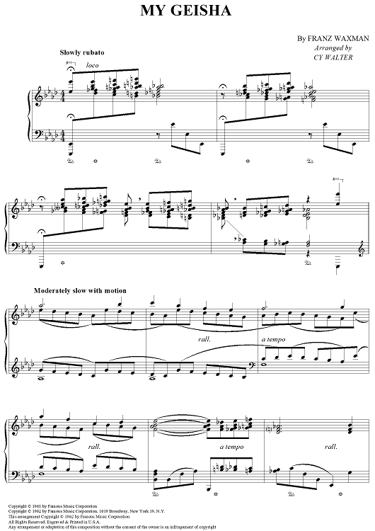 Digital Sheet Music for My Geisha by Franz Waxman, Cy Walter scored for Piano Solo; id:365189