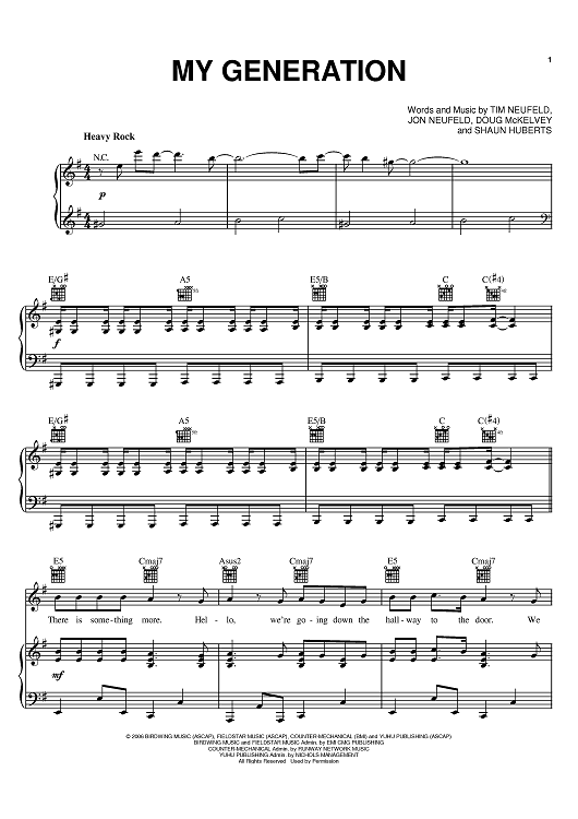 Digital Sheet Music for My Generation by Tim Neufeld, Jon Neufeld, Starfield, Shaun Huberts, Doug McKelvey scored for Piano/Vocal/Chords; id:393591