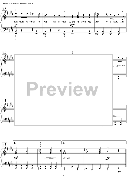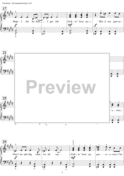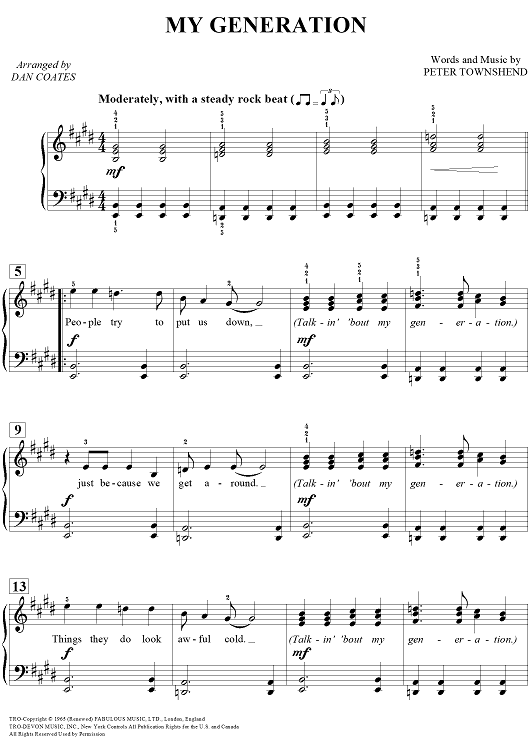 Digital Sheet Music for My Generation by Dan Coates, Peter Townshend scored for Piano; id:462607