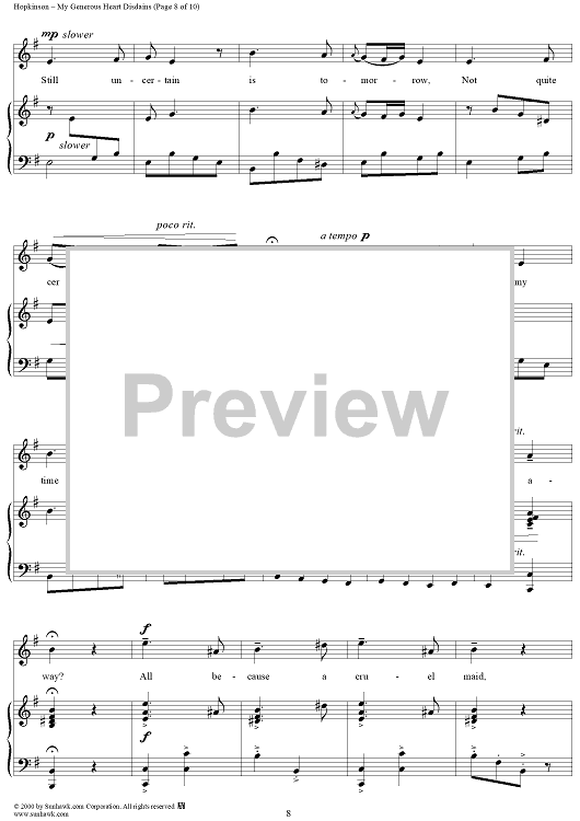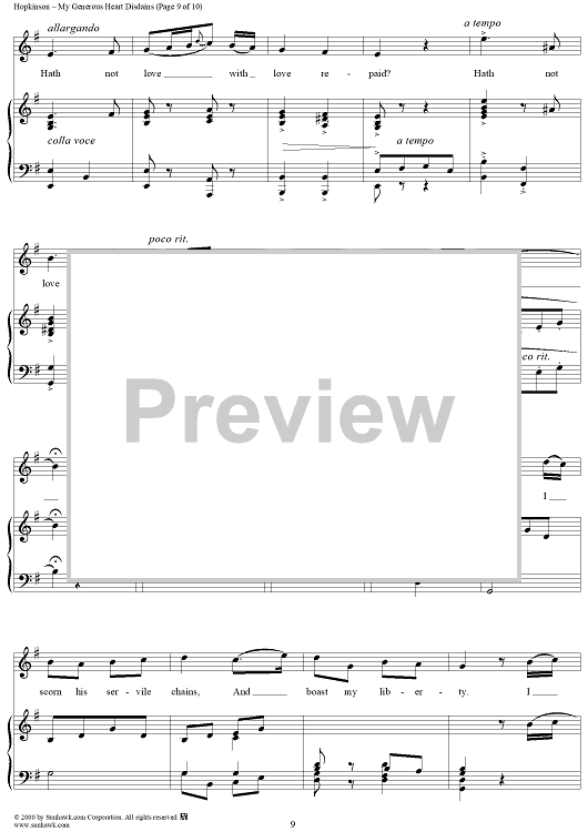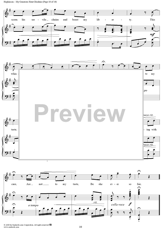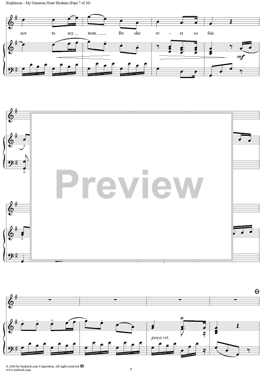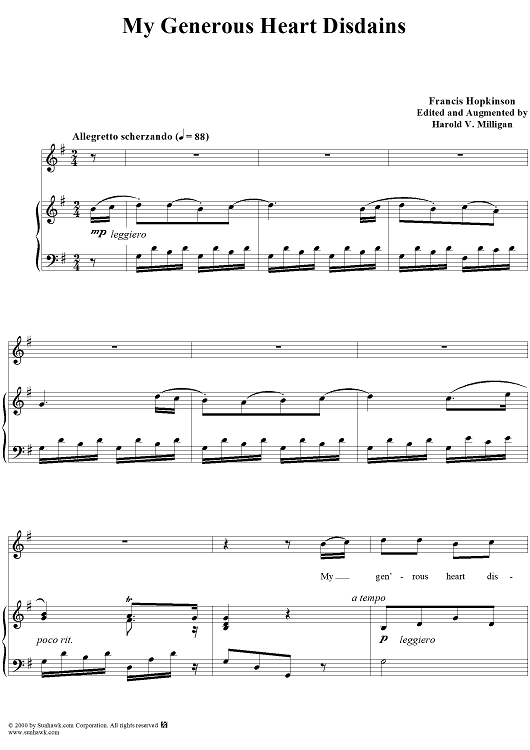 Digital Sheet Music for My Generous Heart Disdains by Francis Hopkinson, Harold V. Milligan scored for Piano/Vocal; id:174842