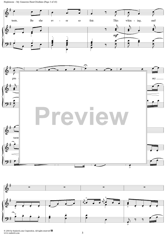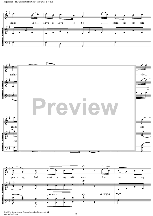 "My Generous Heart Disdains" Sheet Music by Francis Hopkinson