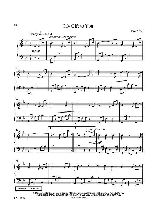 Digital Sheet Music for My Gift to You by Jane Wood scored for Piano Solo; id:434416