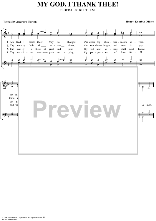 Digital Sheet Music for My God, I Thank Thee! by Henry Kemble Oliver, Andrews Norton scored for Four-part Mixed Chorus; id:118147