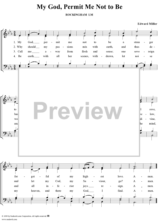 Digital Sheet Music for My God, Permit Me Not to Be by Edward Miller scored for Four-part Mixed Chorus; id:251351