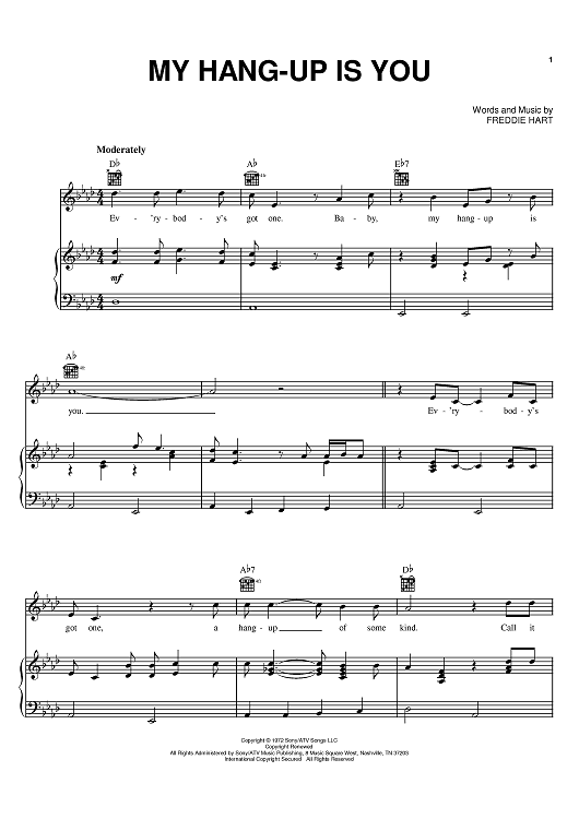 Digital Sheet Music for My Hang-Up Is You by Freddie Hart scored for Piano/Vocal/Chords; id:388161