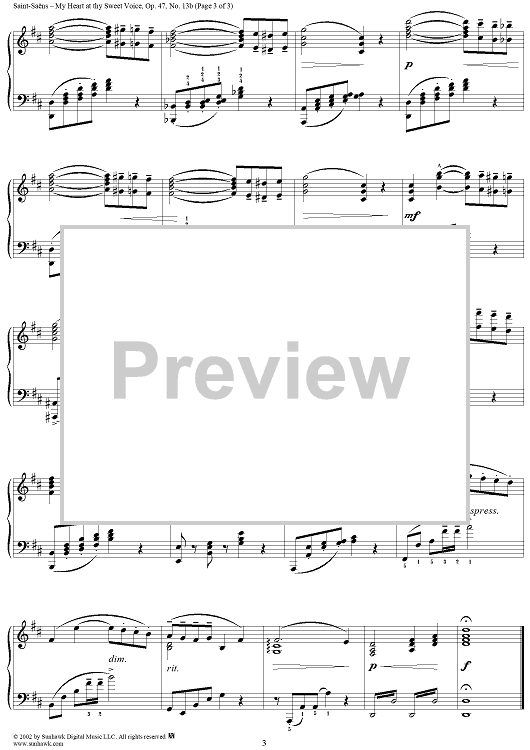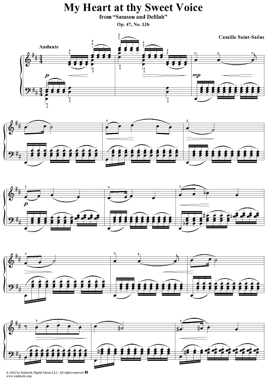 Digital Sheet Music for My Heart at thy Sweet Voice by Camille Saint-Saëns scored for Piano Solo; id:252356