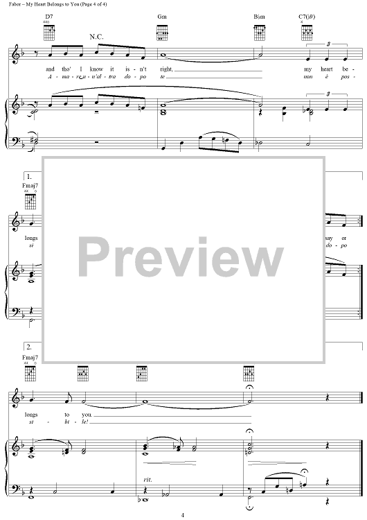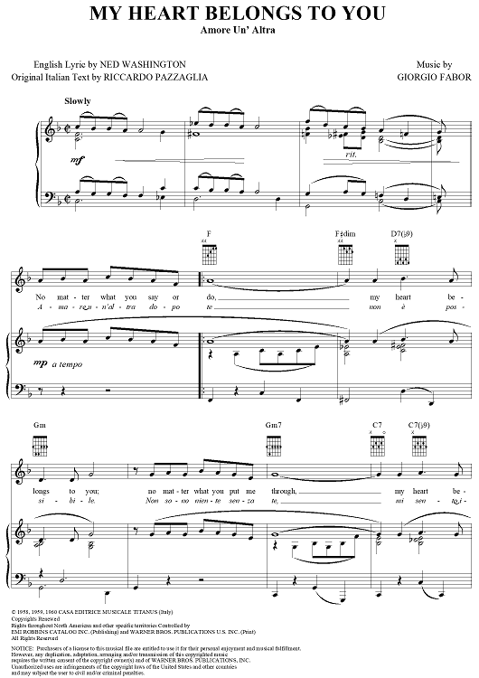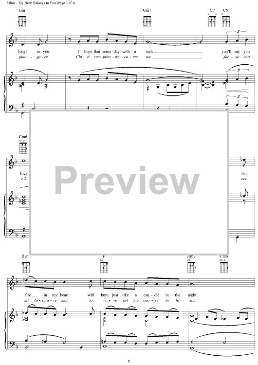 Digital Sheet Music for My Heart Belongs to You by Giorgio Fabor, Riccardo Pazzaglia scored for Piano/Vocal/Chords; id:289431