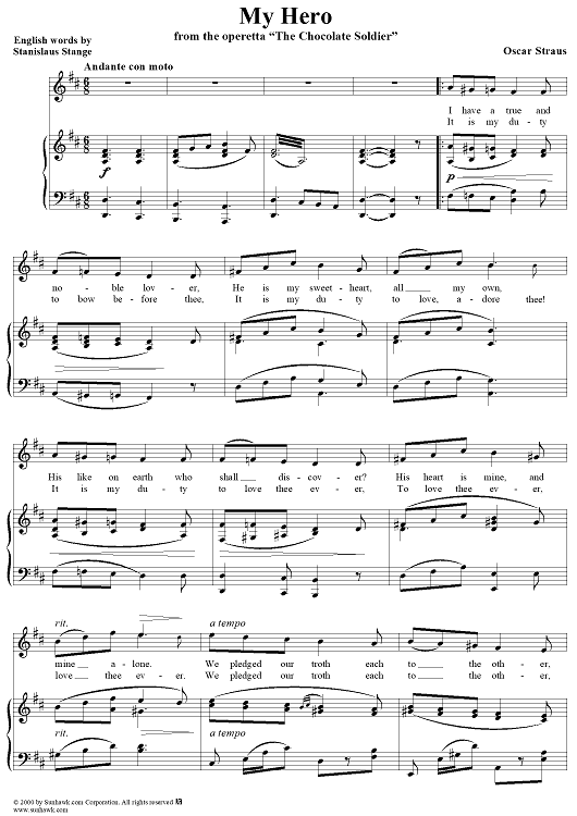 Digital Sheet Music for My Hero by Oscar Straus, Stanislaus Stange scored for Piano/Vocal; id:240312