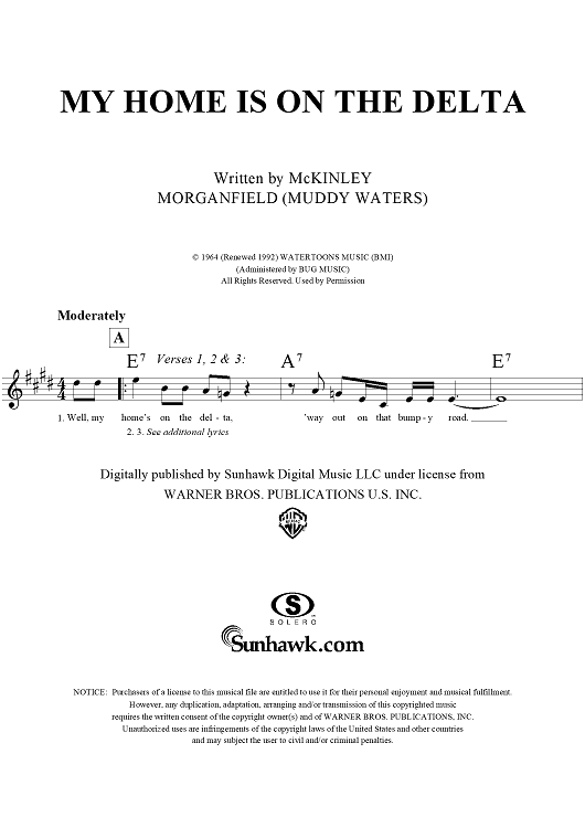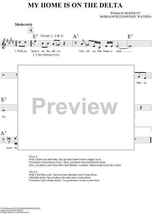 Digital Sheet Music for My Home Is on the Delta by Muddy Waters scored for Lead Sheet; id:291532