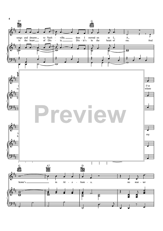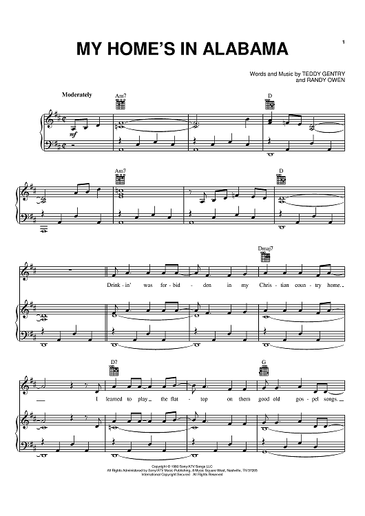 Digital Sheet Music for My Home's In Alabama by Randy Owen, Teddy Gentry, Alabama scored for Piano/Vocal/Chords; id:373400