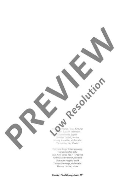 In a magazine with reports on mental institutions, Thomas Larcher came across interviews with patients: 'These sentences are of a strong inner power, yet do not claim to convey an overall picture of these people. There rather appear snatches from their world like a stroboscope.' The soprano part in Larcher's composition attends to these texts in a very restraint, often introverted manner, but they continue to have an effect in the instrumental parts, like catalysts of seemingly disturbing processes. The world premiere with Juliane Banse, Christian Tetzlaff, Nikolaj Schneider and the composer on the piano took place at the renowned festival 'Spannungen' in the power station of Heimbach in 2002. Recently, a recording has been released by ECM New Series.