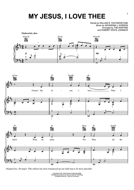"My Jesus, I Love Thee" Sheet Music by Adoniram J. Gordon