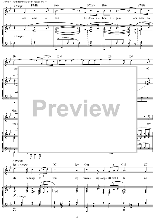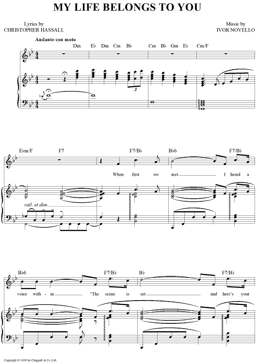 Digital Sheet Music for My Life Belongs To You by Ivor Novello, Christopher Hassall scored for Piano/Vocal/Chords; id:426763