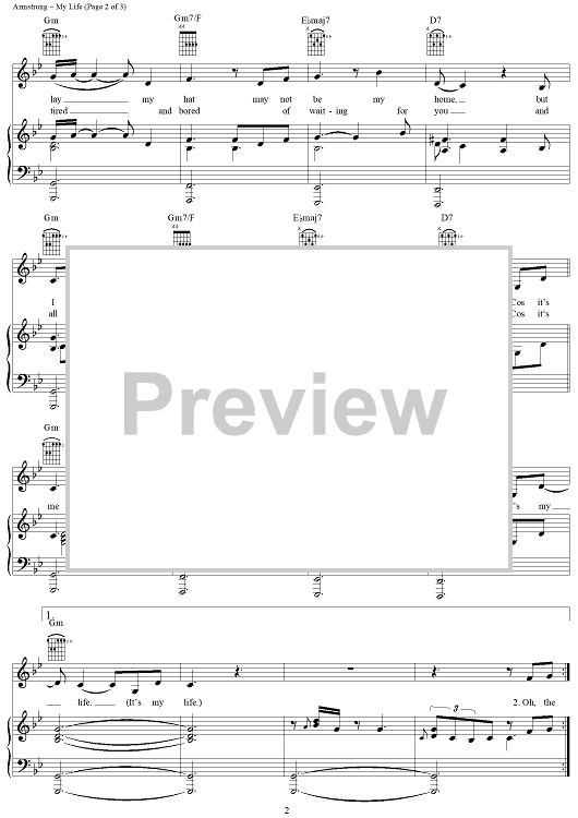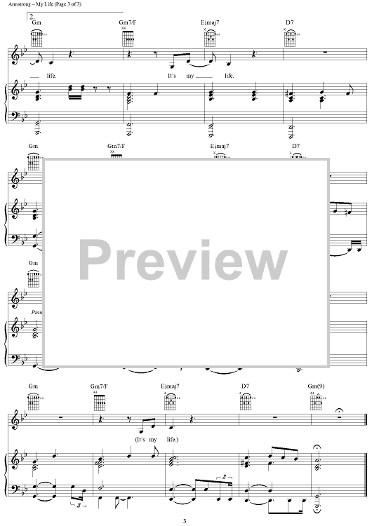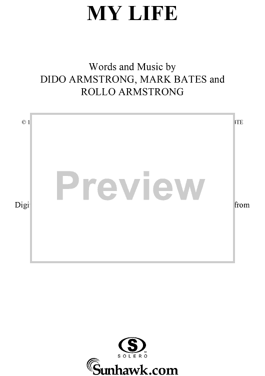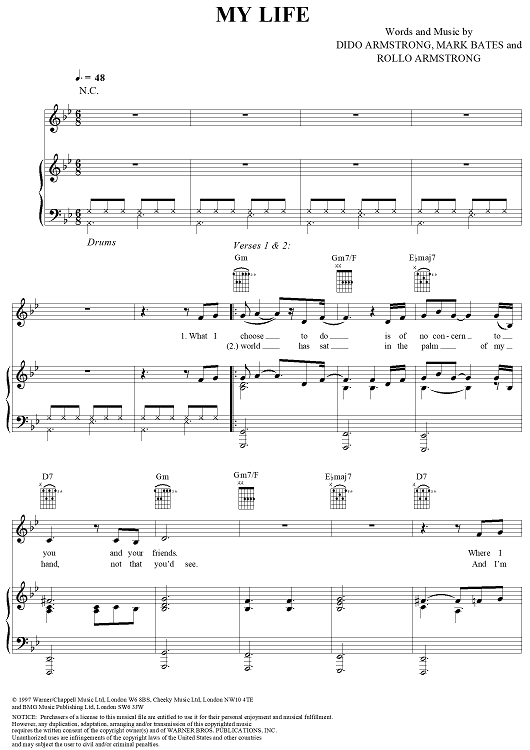 Digital Sheet Music for My Life by Dido Armstrong, Dido, Rollo Armstrong, Mark Bates scored for Piano/Vocal/Chords; id:285333