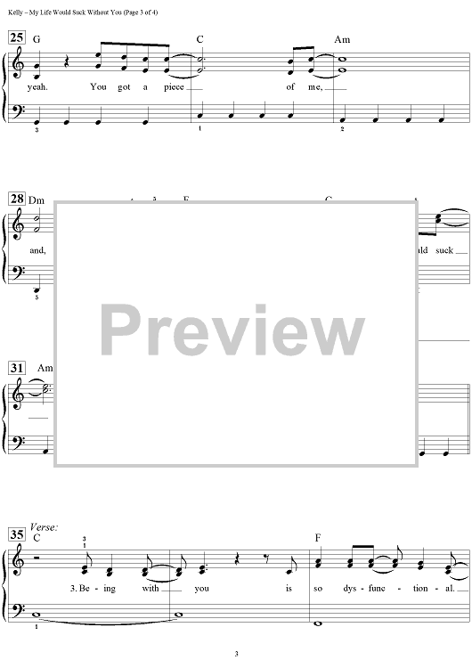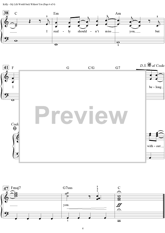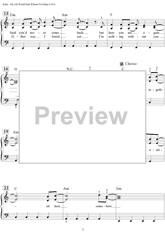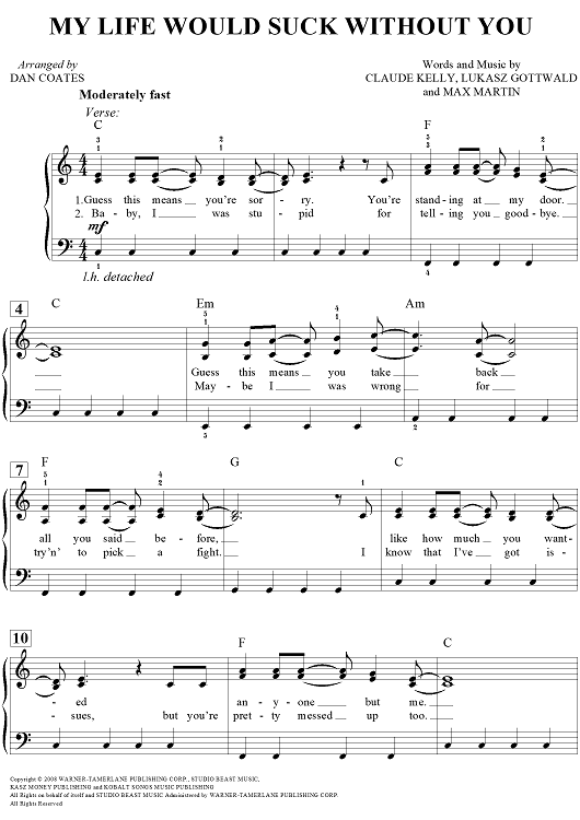 Digital Sheet Music for My Life Would Suck Without You by Dan Coates, Max Martin, Claude Kelly, Kelly Clarkson, Lukasz Gottwald scored for Easy Piano/Vocal/Chords; id:457519