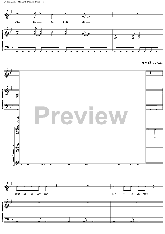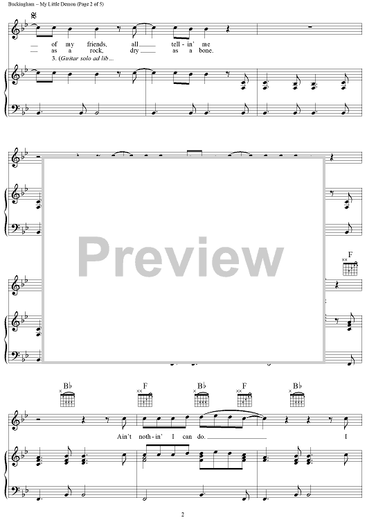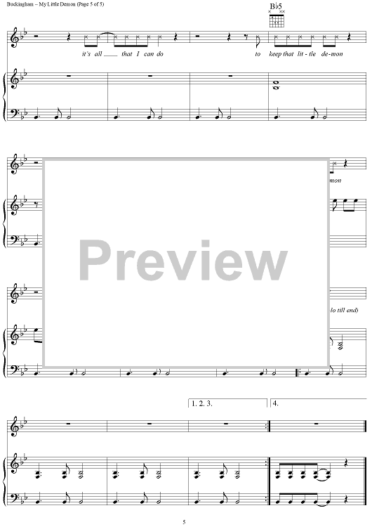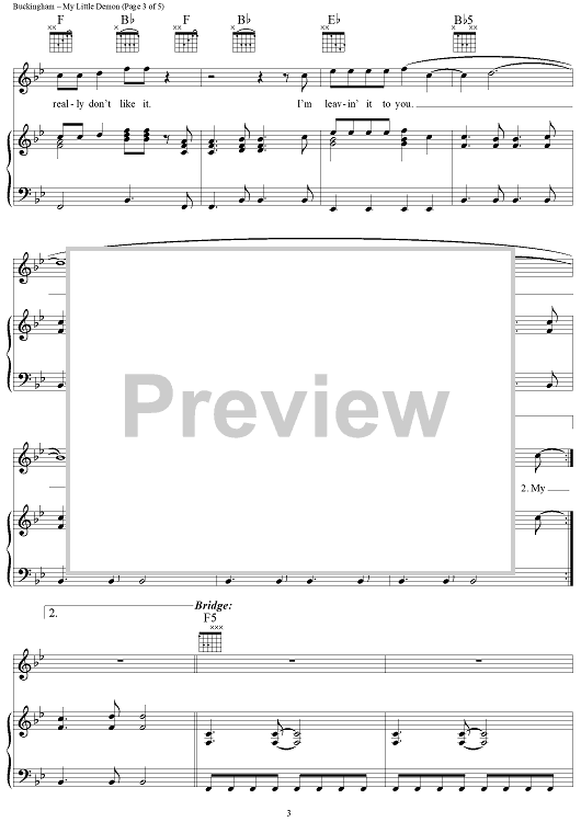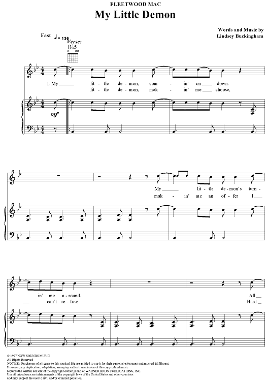 Digital Sheet Music for My Little Demon by Lindsey Buckingham, Fleetwood Mac scored for Piano/Vocal/Chords; id:111508