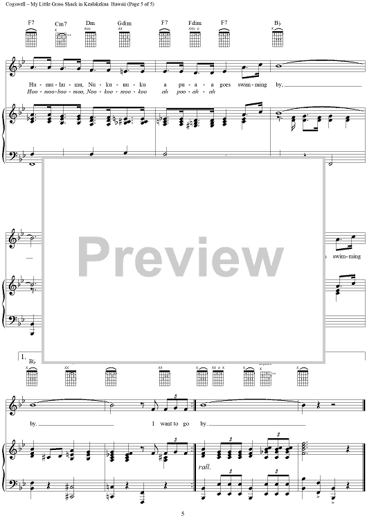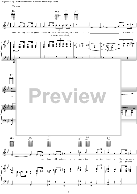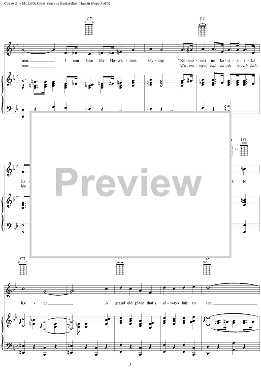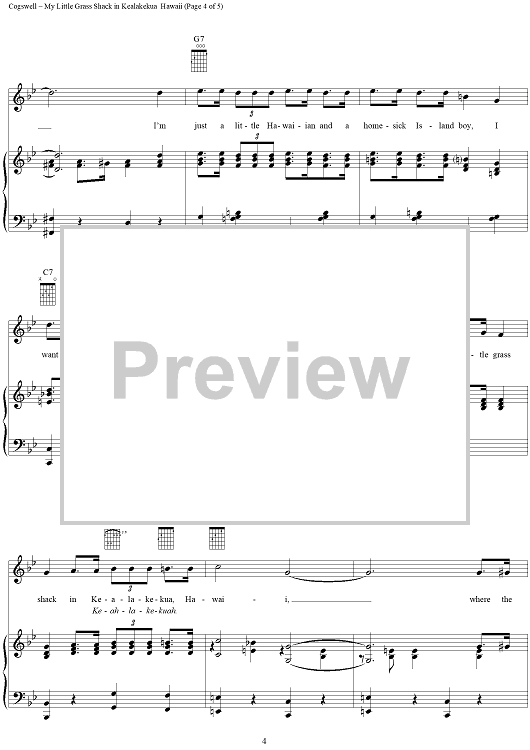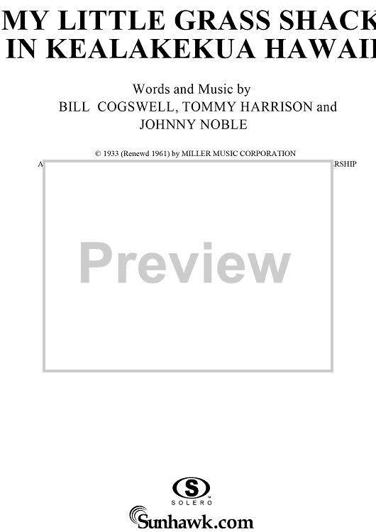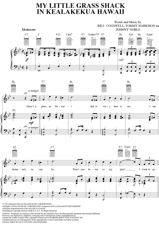 Digital Sheet Music for My Little Grass Shack in Kealakekua Hawaii by Bill Cogswell, Johnny Noble, Tommy Harrison scored for Piano/Vocal/Chords; id:272380