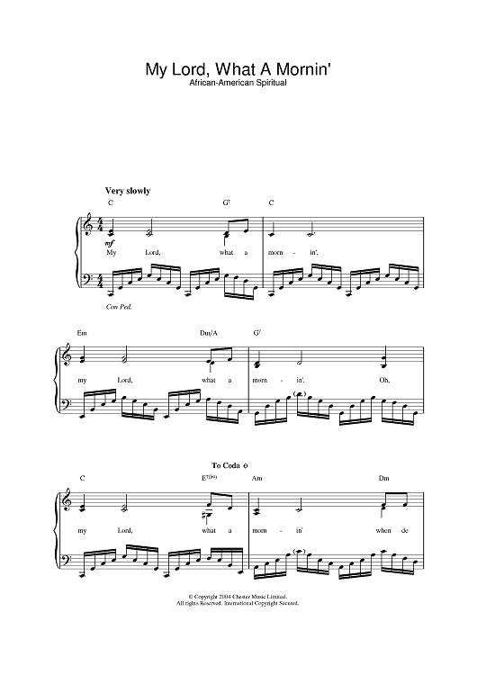 Digital Sheet Music for My Lord, What A Mornin' by scored for Piano/Vocal/Chords; id:378624