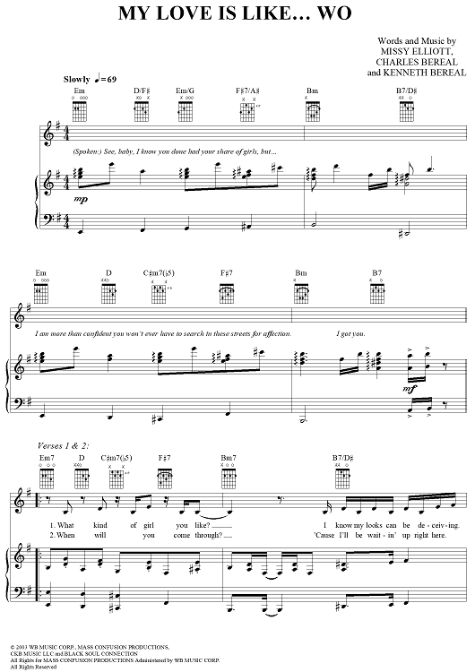 Digital Sheet Music for My Love Is Like...Wo by Mya, Missy Elliott, Charles Bereal, Kenneth Bereal scored for Piano/Vocal/Chords; id:303161