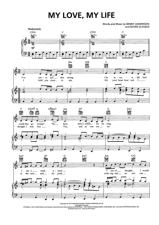 Digital Sheet Music for My Love, My Life by ABBA, Benny Andersson, Bjorn Ulvaeus scored for Piano/Vocal/Chords; id:466720
