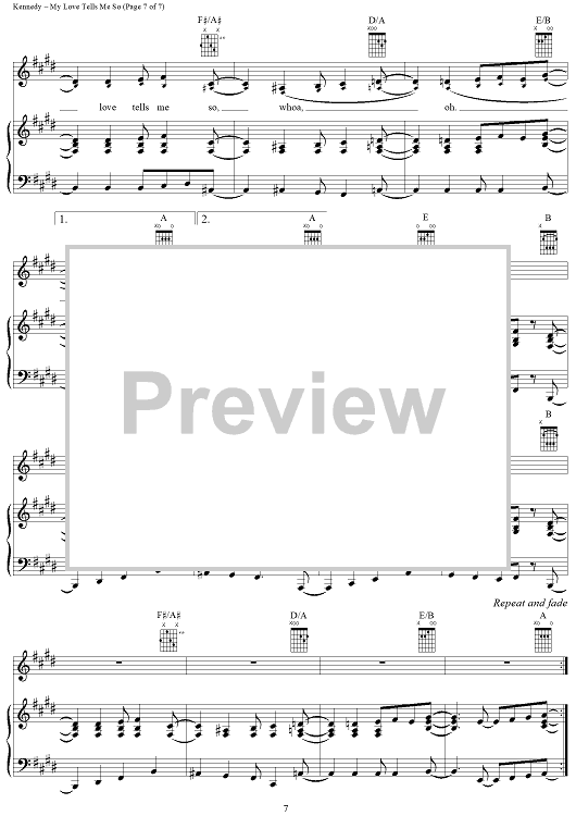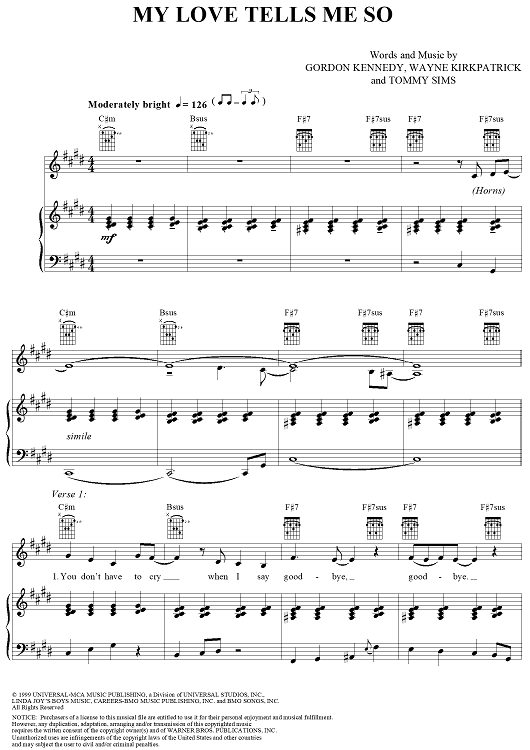 Digital Sheet Music for My Love Tells Me So by Tommy Sims, Wayne Kirkpatrick, Chris Gaines, Gordon Kennedy scored for Piano/Vocal/Chords; id:240678