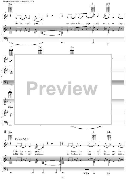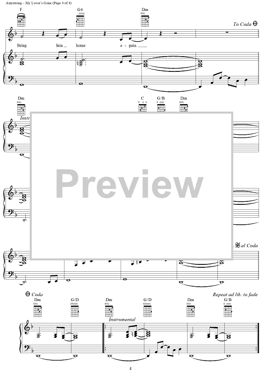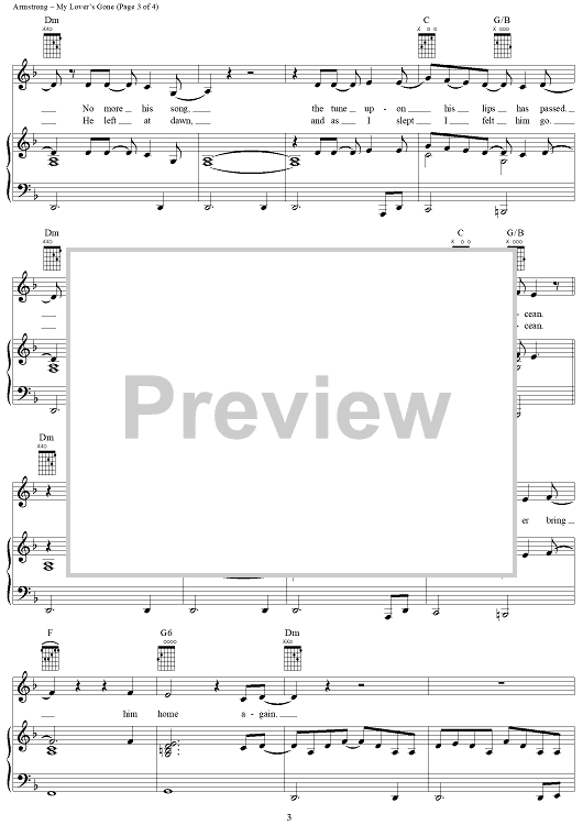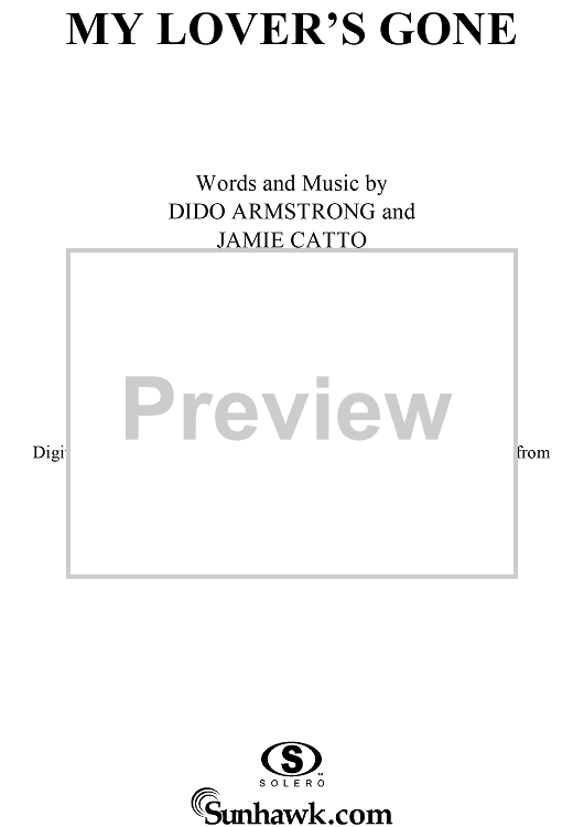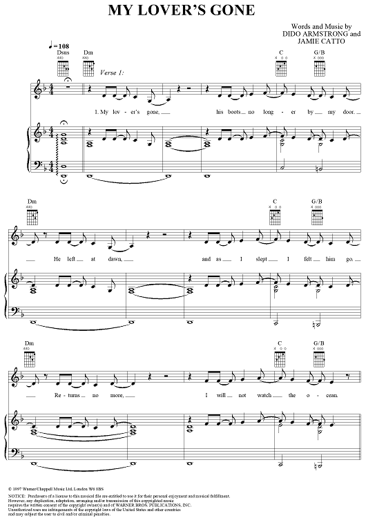 Digital Sheet Music for My Lover's Gone by Dido Armstrong, Dido, Jamie Catto scored for Piano/Vocal/Chords; id:285326
