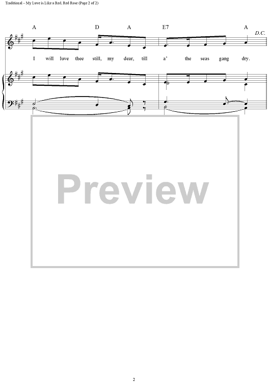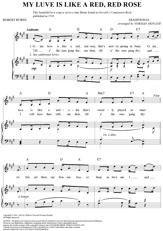 Digital Sheet Music for My Luve Is Like a Red, Red Rose by Robert Burns, Norman Monath, Traditional scored for Piano/Vocal/Chords; id:116191