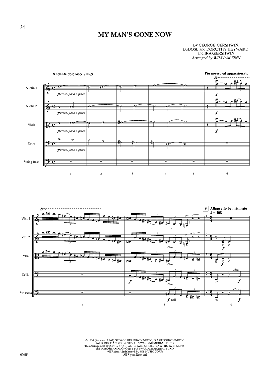 Digital Sheet Music for My Man's Gone Now - Conductor's Score by , George Gershwin, Ira Gershwin, Dubose & Dorothy Heyward, William Zinn scored for String Quartet or String Orchestra; id:362293