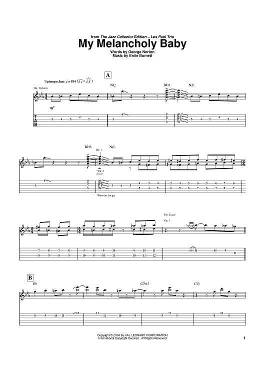 Digital Sheet Music for My Melancholy Baby by Django Reinhardt, Les Paul, Ernie Burnett, George A. Norton scored for Guitar Tab; id:373329