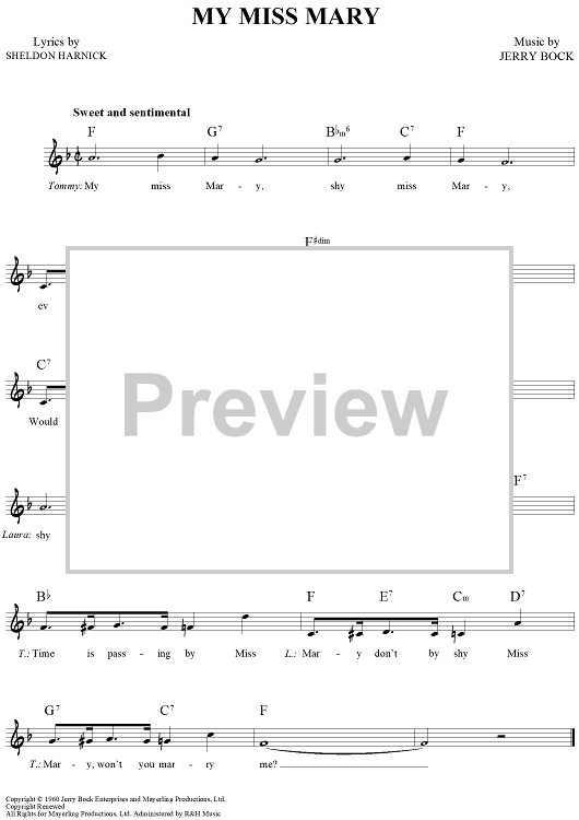 Digital Sheet Music for My Miss Mary by Jerry Bock, Sheldon Harnick scored for Lead Sheet; id:460924
