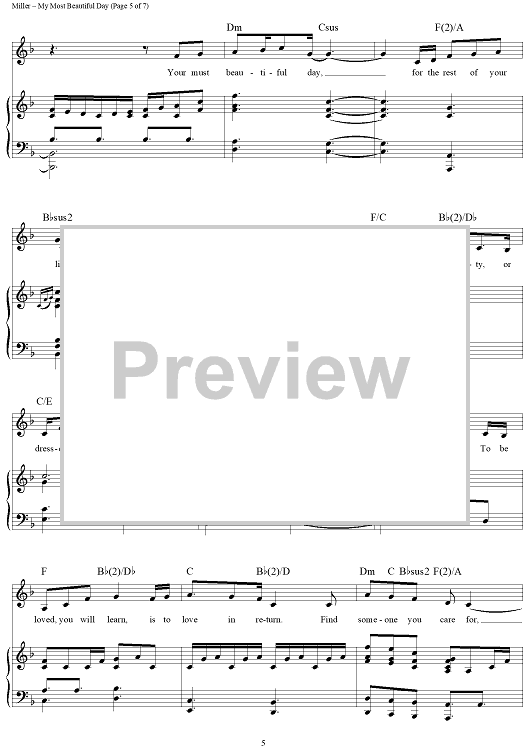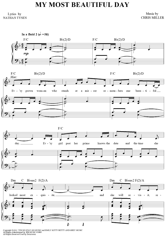 Digital Sheet Music for My Most Beautiful Day by Chris Miller, Nathan Tysen scored for Piano/Vocal/Chords; id:463836