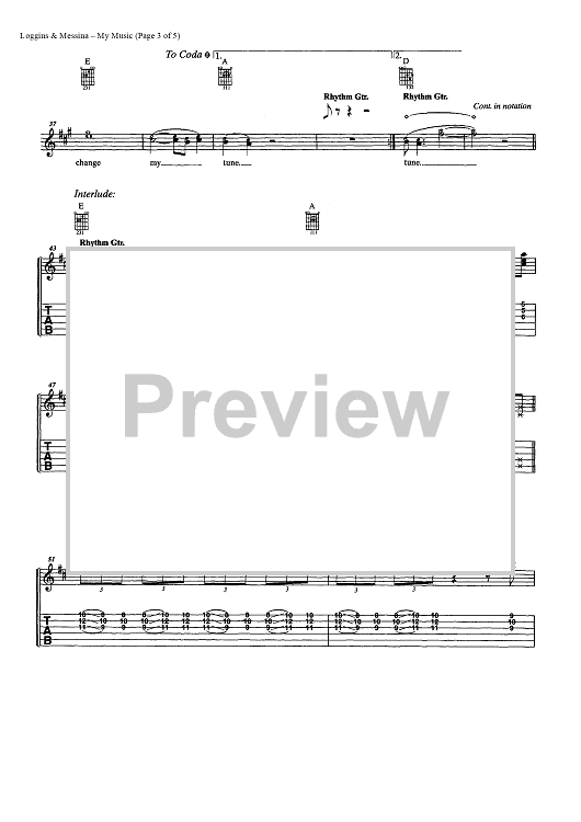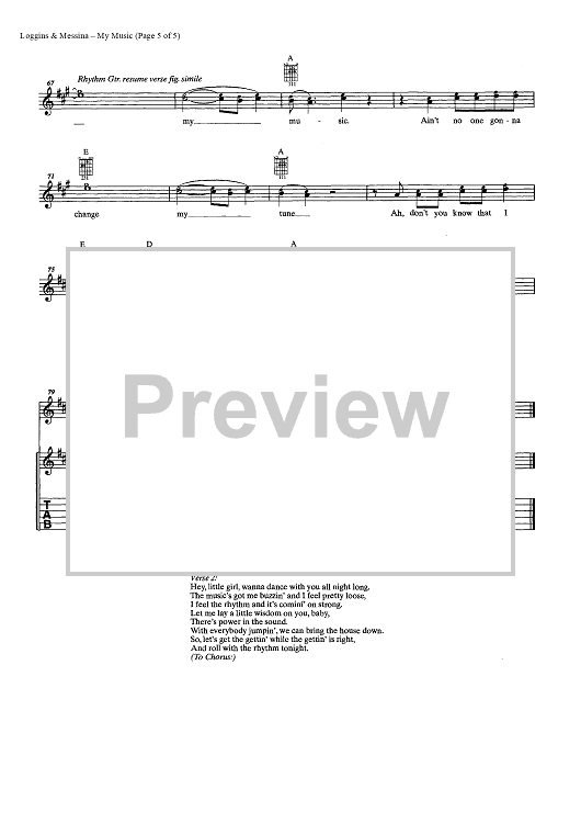 Digital Sheet Music for My Music by Kenny Loggins, Jim Messina, Loggins and Messina scored for Easy Guitar Tab/Vocal/Chords; id:449225