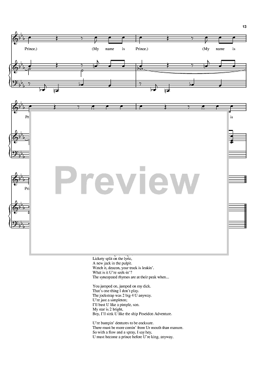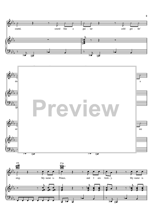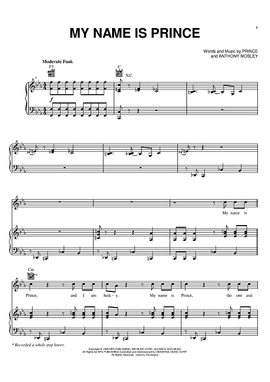 Digital Sheet Music for My Name Is Prince by Prince, Anthony Mosley scored for Piano/Vocal/Chords; id:398349