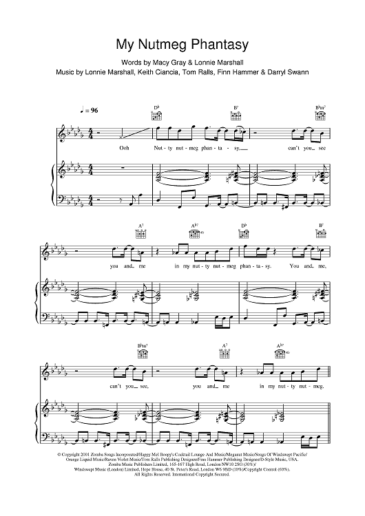 Digital Sheet Music for My Nutmeg Phantasy by Macy Gray, Keith Ciancia, Tom Ralls scored for Piano/Vocal/Chords; id:380124