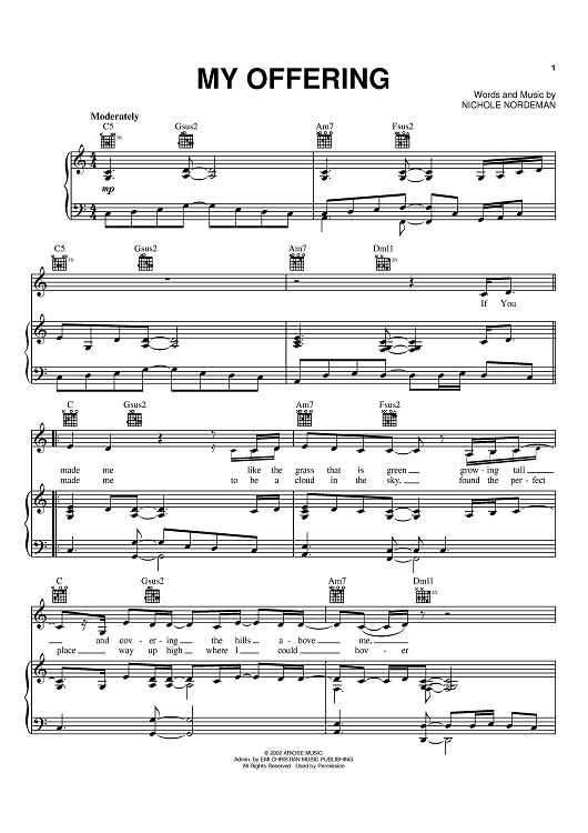 Digital Sheet Music for My Offering by Nichole Nordeman scored for Piano/Vocal/Chords; id:370041