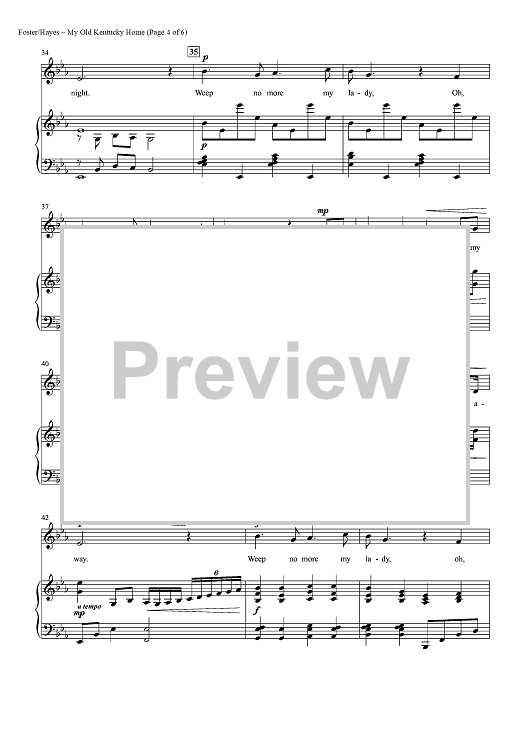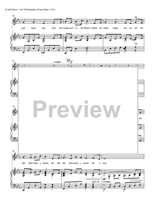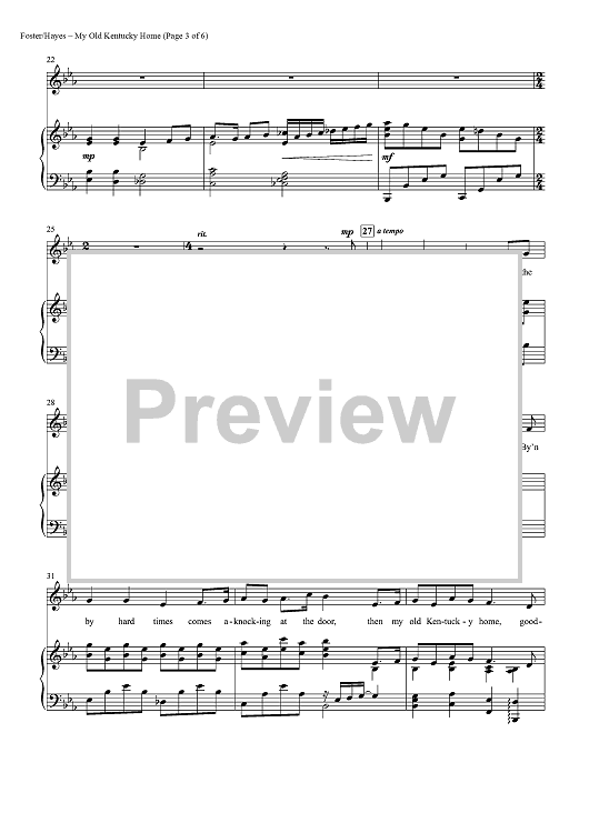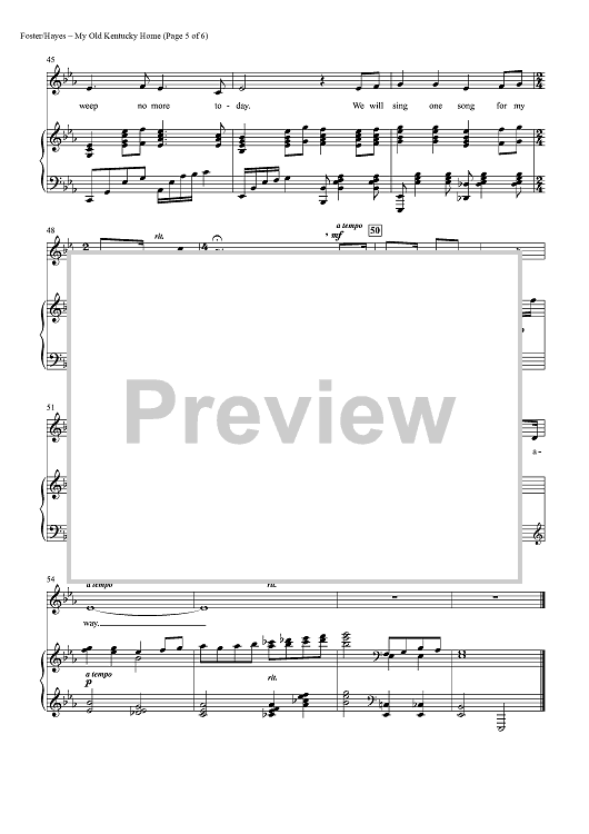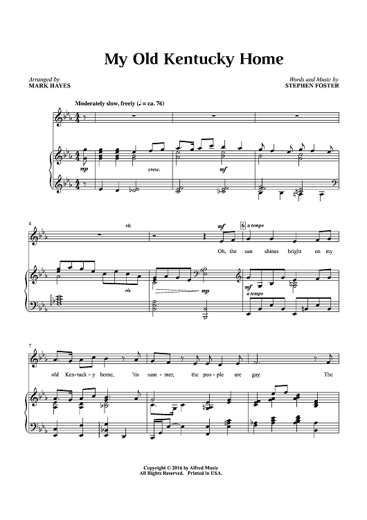 "My Old Kentucky Home" Sheet Music by Stephen Foster
