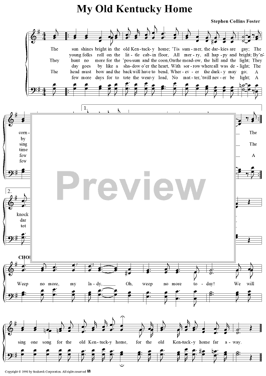 Digital Sheet Music for My Old Kentucky Home by Stephen Foster scored for Four-part Mixed Chorus; id:95314