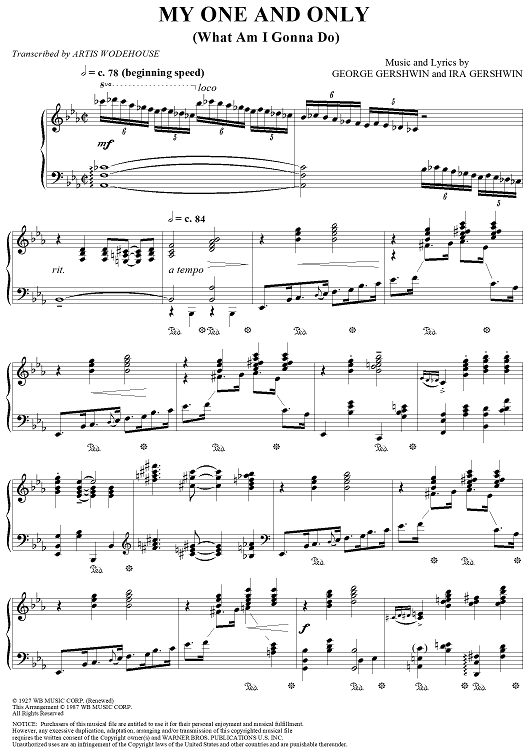 Digital Sheet Music for My One and Only (What Am I Gonna Do) by George Gershwin, Ira Gershwin, Artis Wodehouse scored for Piano Solo; id:109313