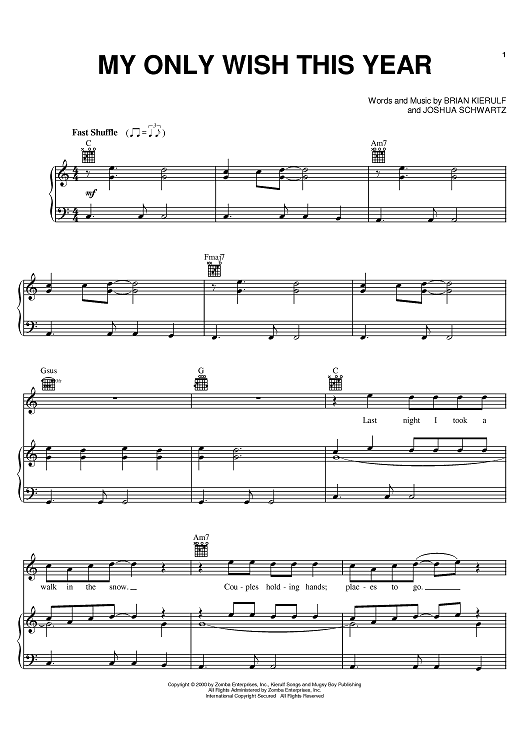 Digital Sheet Music for My Only Wish This Year by Brian Kierulf, Joshua Schwartz, Britney Spears scored for Piano/Vocal/Chords; id:384658