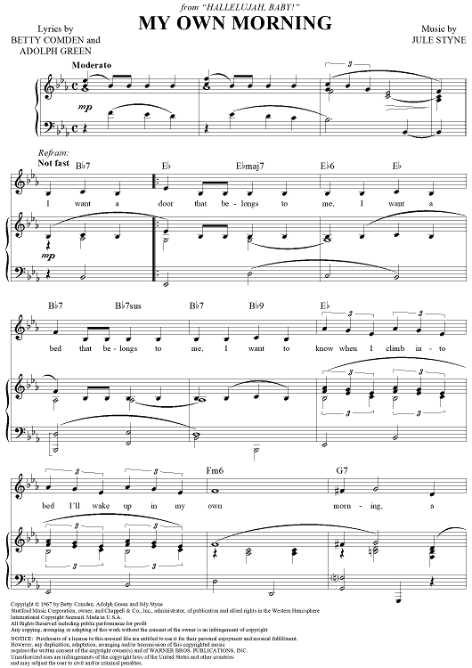 Digital Sheet Music for My Own Morning by Jule Styne, Betty Comden, Adolph Green scored for Piano/Vocal/Chords; id:315080
