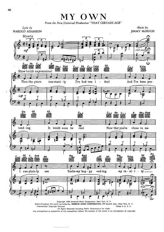 Digital Sheet Music for My Own by Jimmy McHugh, Harold Adamson, Barry Wood scored for Piano/Vocal/Chords; id:423047