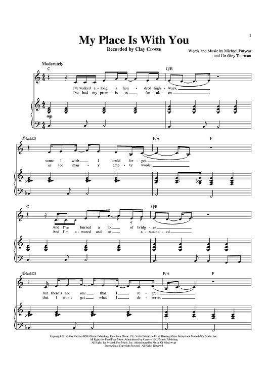 Digital Sheet Music for My Place Is With You by Slick Rick, Clay Crosse, Michael Puryear, Geoff Thurman scored for Piano/Vocal/Chords; id:396938