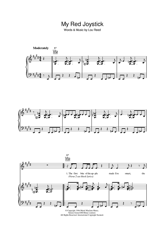 Digital Sheet Music for My Red Joystick by Lou Reed scored for Piano/Vocal/Chords; id:401912