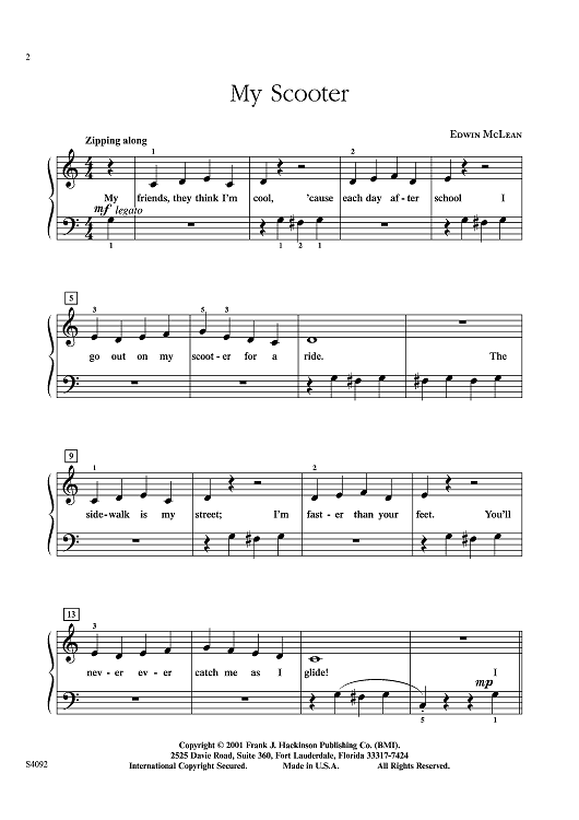 With the revival of the scooter comes this charming elementary solo, sure to be a favorite with students. Features an easy-to-play melody in C position, very catchy lyrics, and easy accidentals.