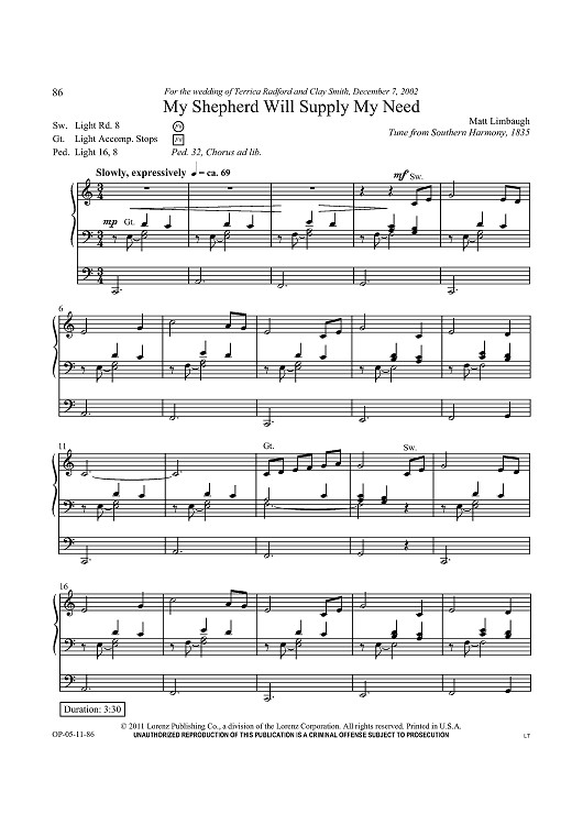 Digital Sheet Music for My Shepherd Will Supply My Need by Southern Harmony, Matt Limbaugh scored for Organ Solo; id:434386