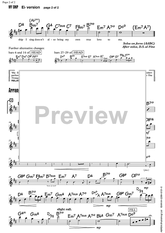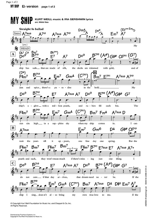 Digital Sheet Music for My Ship by Ira Gershwin, Nikki Iles, Kurt Weill scored for E-flat Lead Sheet; id:355567