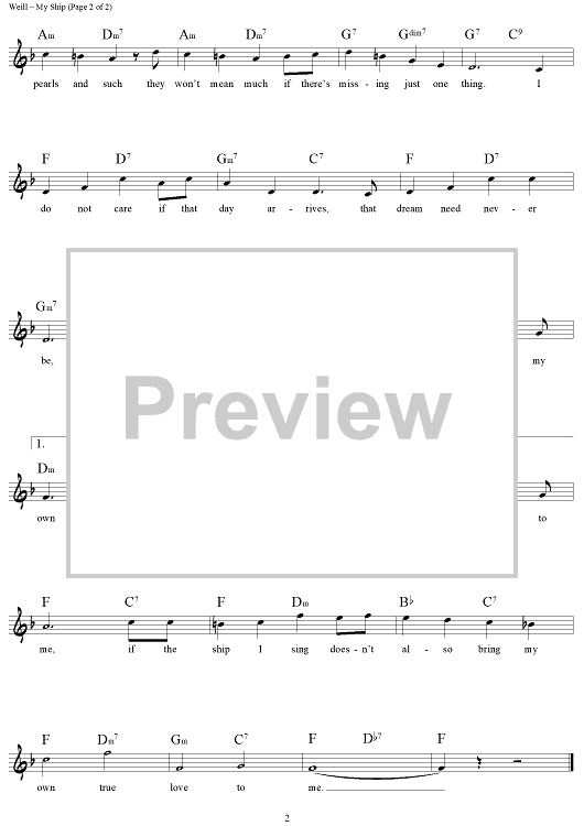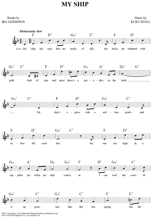 Digital Sheet Music for My Ship by Ira Gershwin, Kurt Weill scored for Lead Sheet; id:451701