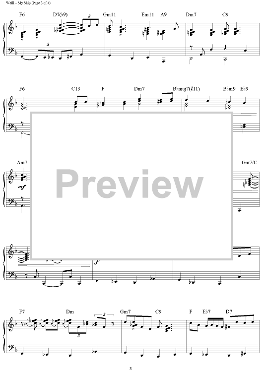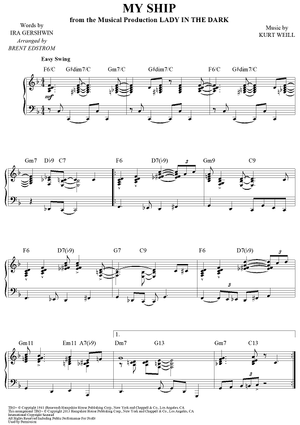 Digital Sheet Music for My Ship by Ira Gershwin, Brent Edstrom, Kurt Weill scored for Piano Solo; id:464824