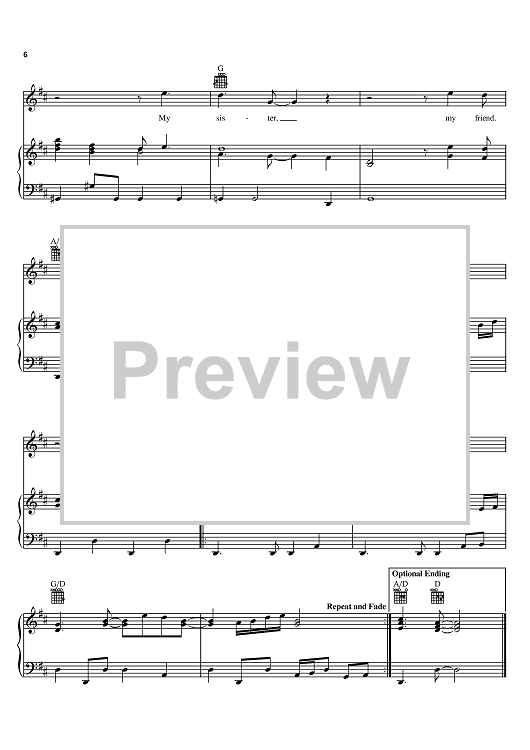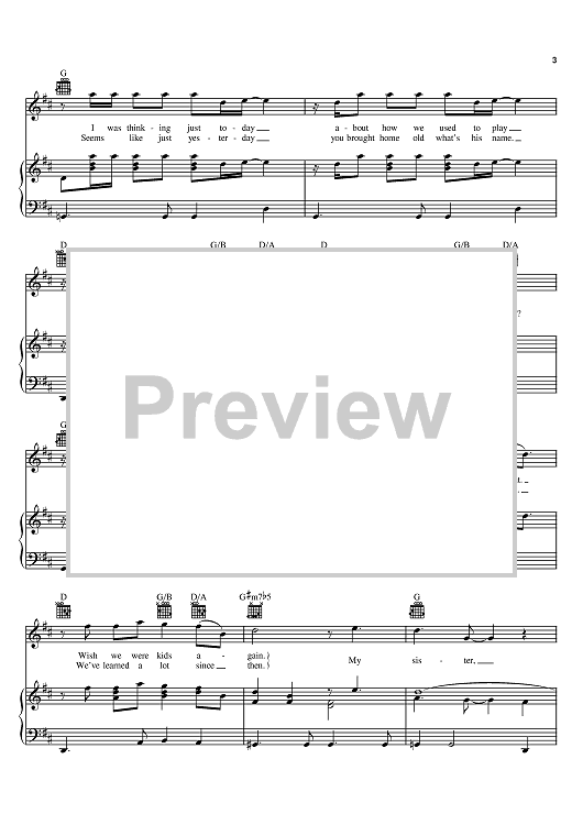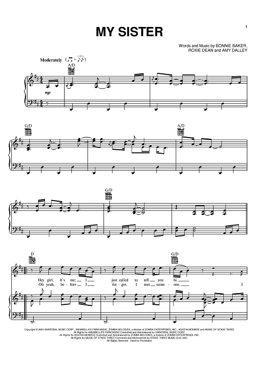 Digital Sheet Music for My Sister by Reba McEntire, Bonnie Baker, Roxie Dean, Amy Dalley scored for Piano/Vocal/Chords; id:385109