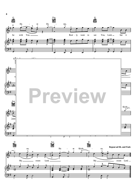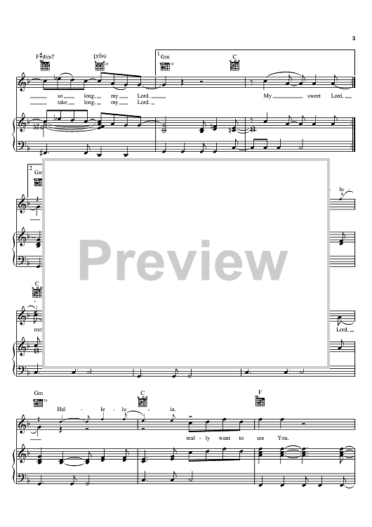 Digital Sheet Music for My Sweet Lord by George Harrison scored for Piano/Vocal/Chords; id:368105